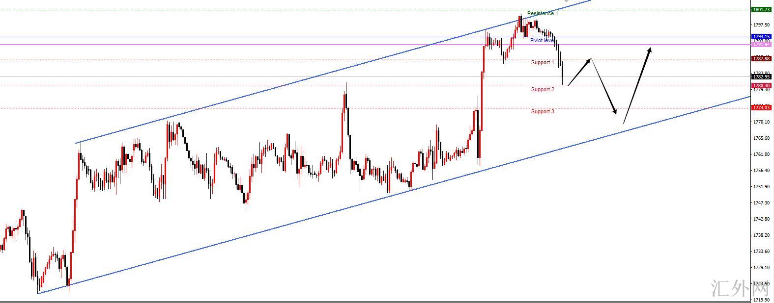 截至发稿,黄金欧盘显现了适当的回调,以下着重关注日间支撑1781以及1774.一个是非农的最高位,其他是以前区间的平台上沿,回踩的几率都挺大。