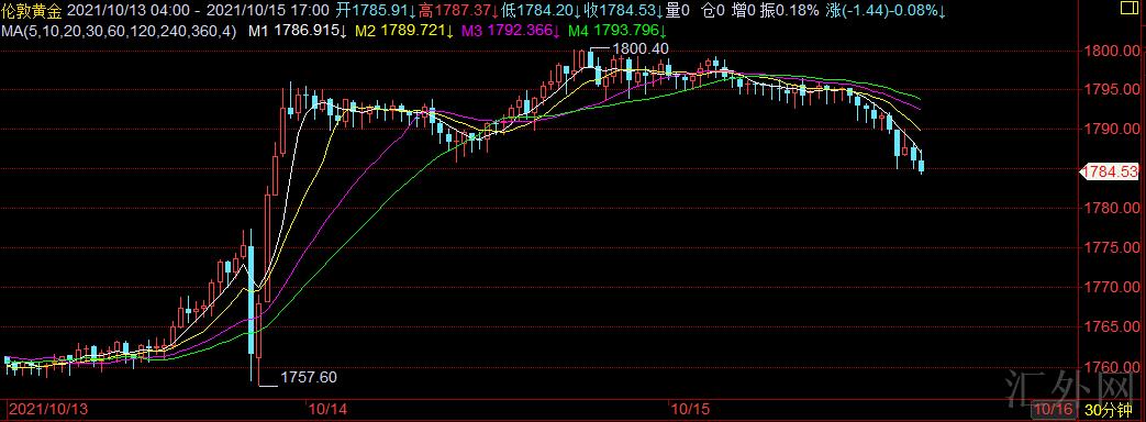 昨日盘黄金价格借势在此之前一日上升后再次将升幅扩大,然事实未能达到对整数关键点位的击穿,隔夜及今日早盘时段截至到当前,依旧保持1800美元关键点位以下整理运行,现价1784左右。