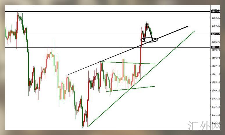 1800是欧盘阶段就摸到的一个百元关口,后续即使发生了一部分短回踩,但始终都没有再去突破1790,连白天的回踩程度都不如,接连的顶部反复收线也是让我昨天熬了一场夜,我得随时盯紧它是否又一次上1800啊!免得第二天睁开眼就是其他新世界,投资人也经受不住该种所谓的突发行情。