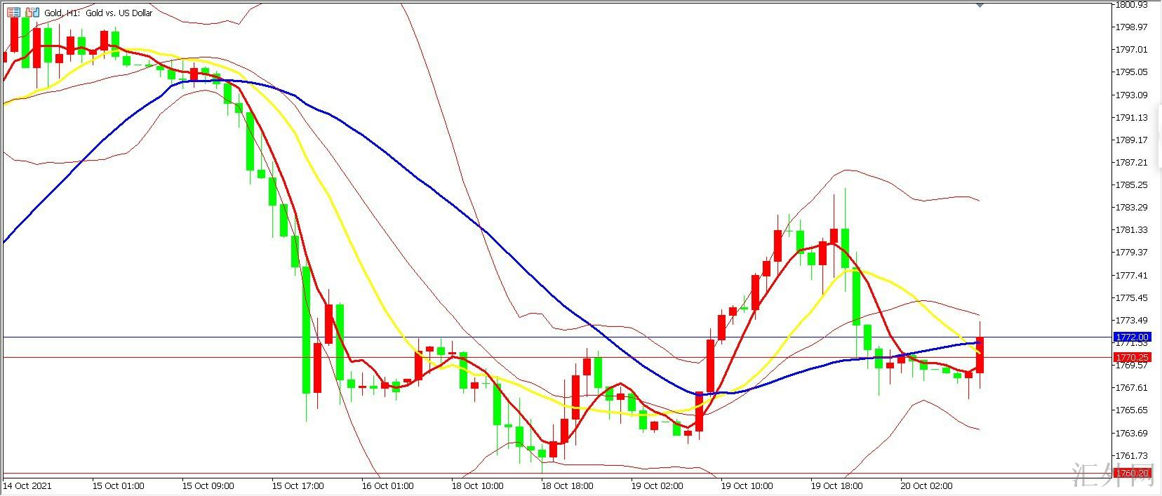 对于今日行情,点位上,以下推荐先注意1764、1757左右支撑,1764是上升通道支撑,1757是10月初以来低位连线延伸后当前的支持区域,也是上星期五起涨点;其次推荐注意1751左右支撑,这里是黄金从1721上升1800的黄金分割0.618名置;若行情持续破低下挫,推荐更深一步注意1738-1733区域支撑。