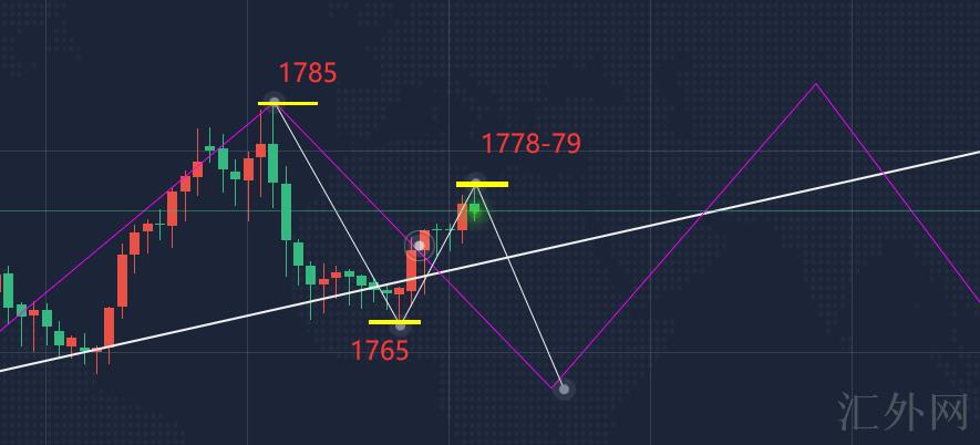 5、当前可将从1785起下探的行情细分成abc锯齿浪,当前行情已探顶1778左右,理论上b浪回撤不会胜过a浪(1785-1766)的0.618,即1778-79左右。若胜过该区间,则结构将突破,局部将上升突破:又一次看到1784左右。将止损放在1783或者1782左右,留给市场一点空间!