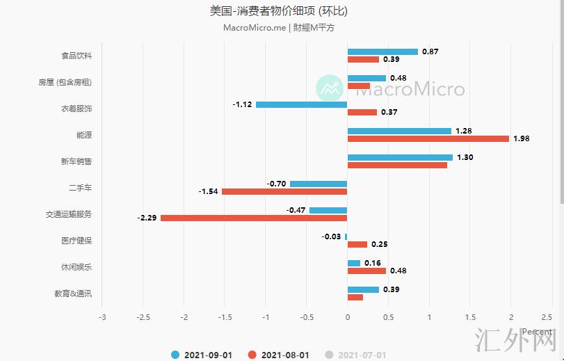这是9月份美国的CPI环比报告,可以目睹食品饮料的开支比上月大幅上涨,房屋环比也大幅上涨。