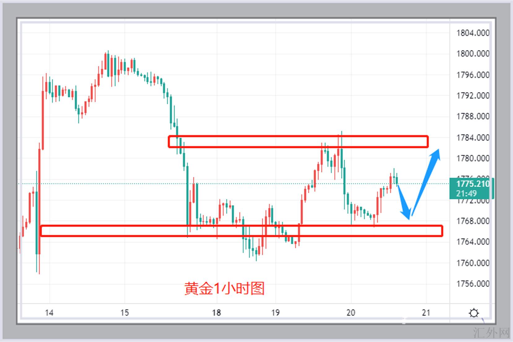 黄金今天到达1783左右以后,买方止盈计划已到,看空黄金持续回弹上升,黄金将持续试探1750-1760区域的支持。