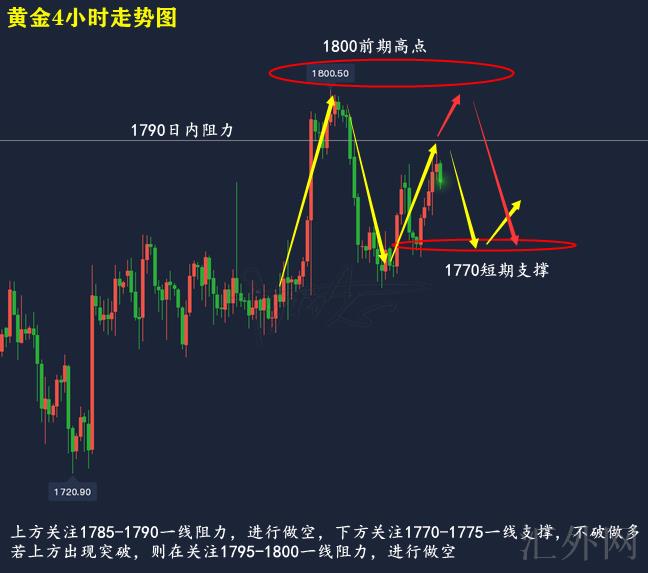 回弹1785-1790左右买跌,止损5美金,计划看1770-1775左右;若击穿则依托1795-1800左右买跌;