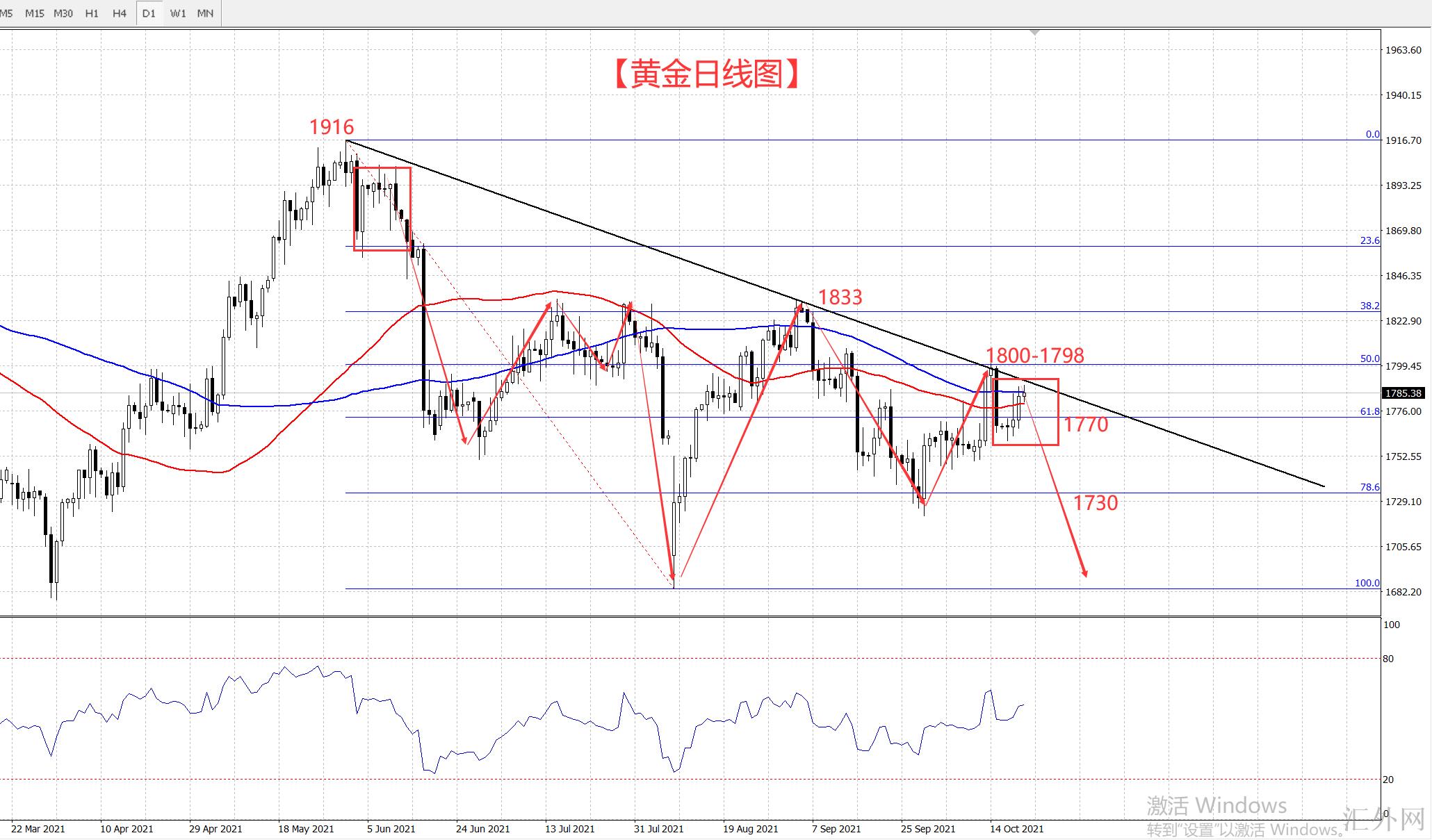 所以说,黄金接下去的趋势交易,依旧持续环绕空执行,黄金的日K线已经跟大家标注的很清楚了,只要这段趋势仍在这个位置震荡,那么跌下去也导致时间的困难,以下短时间支撑注意1760,黄金在短时间内多次于此形成支撑/压力。只要能又一次回归这个关键点位的以下,也就是打开黄金新一次下挫的钥匙。