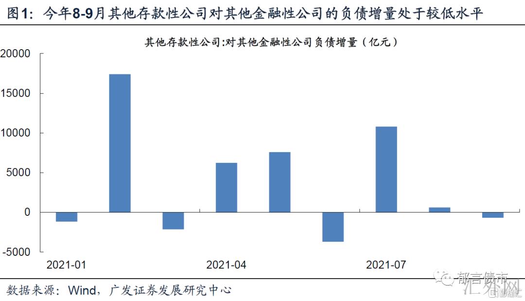 困难三:为何货币市场对中央银行投放的依靠度在上涨?今年3-6月,货币市场形成自发式平衡模式,在7月中央银行降准后面,保持到9月上旬。进入9月中下旬,中央银行逆回购频繁放量,观察其余存款性公司负债端,也可以发现,银行对中央银行的负债在9月增长6362亿元,其余月份增量较低甚至为负。流动性自发平衡模式疑似被打破。这后面的原因,或许在于非银金融机构向银行输送的资金在降低。从其余存款性公司对其余金融性公司的负债来说,今年前三季度增长3.5万亿元,而2019和2020年同期仅分别增长1697亿元、5280亿元。今年8月和9月其余存款性公司对其余金融性公司的负债增量分别为616亿元、-666亿元,显著差于4月、5月和7月,这三个月该指标每月涨幅都在6000亿元以上。而且从同业存单净融资来说,9月同业存单净融资仅407.5亿元,也显著差于7月和8月1000亿元以上的范围。
