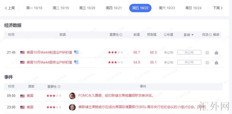 也快到收盘,今夜市场马上揭晓美国10月Markit制造业和服务业PMI报告,在没有许多情绪来统治市场的情形下,一般经济报告还将影响到市场行情,此数据市场预计和前值相差不大,到时关注一下即可。诶,没注意到今夜老鲍也会会出席一个会议啊。