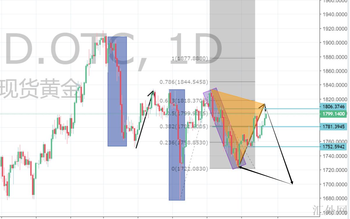 后边33实施的下挫,你会发现它周期比前期两次暴跌都长,而且程度都没有增大不少,即便我们也是这次的参与者,但收盘你能发现显著行情有跌不大动的痕迹,所以才刷新了1720的低位规模,包含当下右半部的推涨也是,其强度很付出,但也导致付出,中间每次全将发生一部分直线抛盘下挫,也就是说黄金当下任然有下挫的属性在,导致反扑的衔接做的很好,差不多没有发生连跌该种情形,直到第二次1800突破,本以为没什么下挫力量在了,结果却还能来一次反向30美金,那我差不多可以断言,这行情肯定没趋势,也就是说前期1833到1720的下挫,到当下的回涨,其实都导致大行情前夜的预案罢了,前者是跌的慢但环境使然,后者是涨的很付出但障碍重重。