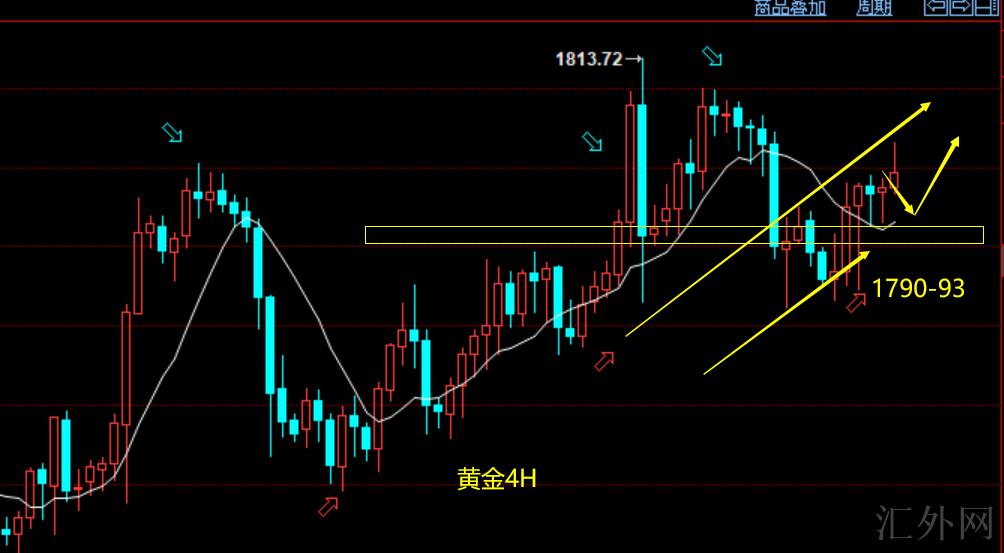 第二: 黄金日线图阴阳交替运行,短时间无显著方向,意味价格也会反复拉锯,尽管亚盘往上击穿1800阻力,但强度也不足。当前价格运行新的箱体中,支撑1790-95左右,阻力1805-10。