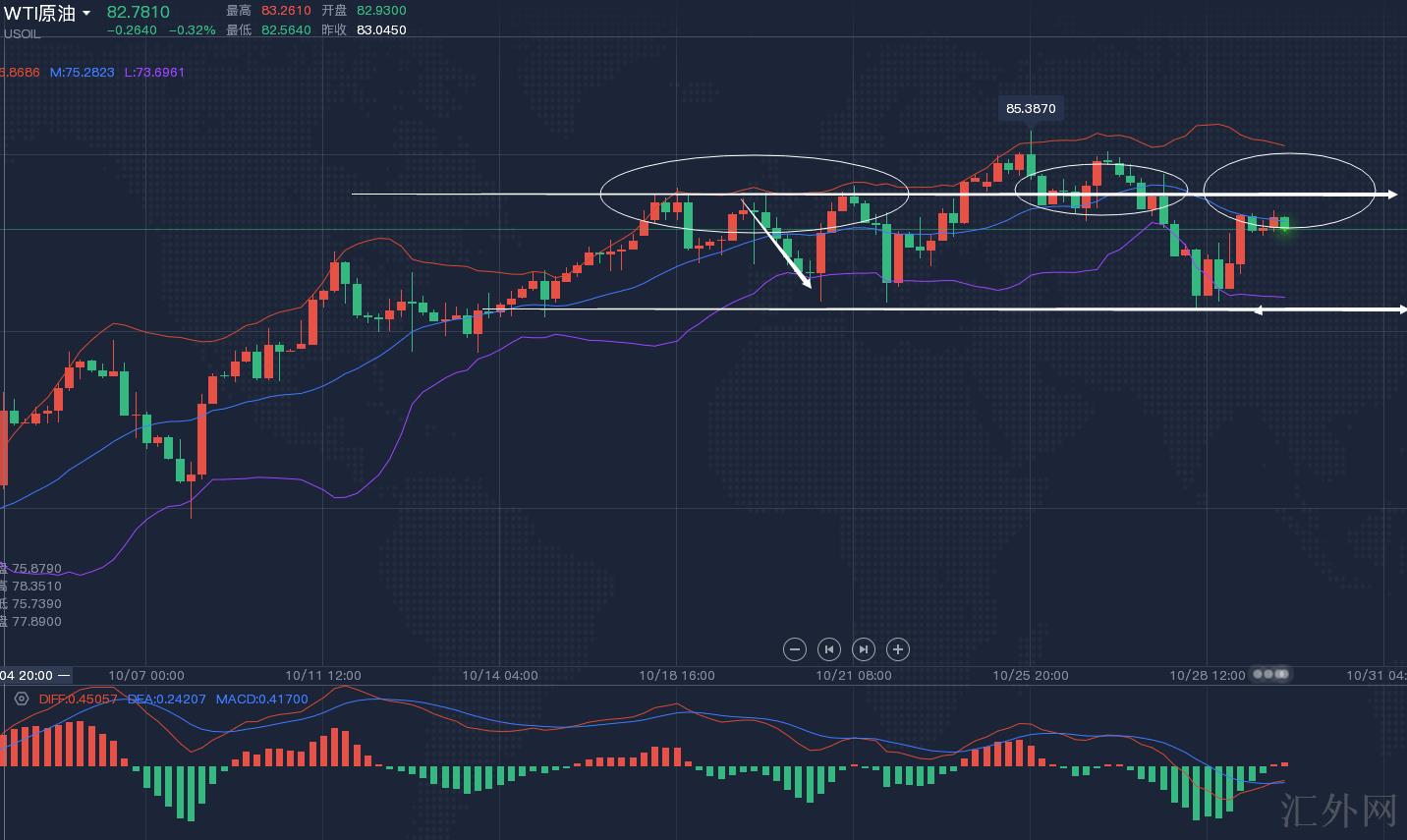 ---10.29原油夜里策略布局:推荐原油稳健注意83.50空单进场,激进可现价83左右直接空,止损84.30,计划看80突破。(以上分析仅供参考,入场风险自理!)