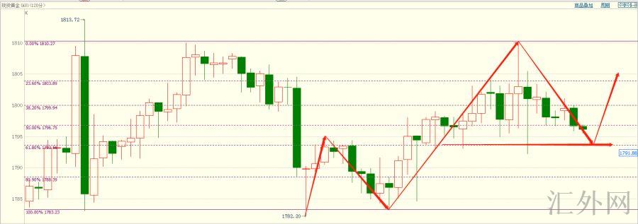 黄金昨天夜里上涨至前方回弹高位1810一线,受制于前方回弹高位的抑制价格又一次展开回调,在前面我们也谈及黄金当前处在短时间的震荡局势,价格也不负众望,刷新平台上沿的位置便开始回调,但是从整体的结构黄金任然处在上涨当中,且内部结构也存在上涨结构的助推,所以逢低买涨依旧更占优,夜里给出逢低买涨的思路,推荐等候价格回调至黄金分割61.8%的位置1793一线多单介入,风控点放置1788以下,计划位目睹1801~1803。