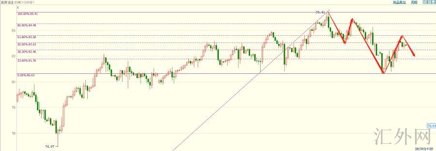 原油受制于前期平台下沿的位置仍在持续的回弹当中,今天早上价格到达黄金分割50%的位置,受制于黄金分割的抑制价格遇阻回调,在欧盘时段价格又一次打击黄金分割50%的位置80.20一线也没能顺遂击穿。但是价格也没有造成大幅下挫,所以也不能出现在是异常不错的买跌点,受于在前期回踩的过程中形成下探结构,那么对应的大约率会造成买跌机会,夜里推荐等候价格回弹至黄金分割61.8%的位置83.50一线空单介入,风控点放置84.00上方,计划位目睹82.70~82.50