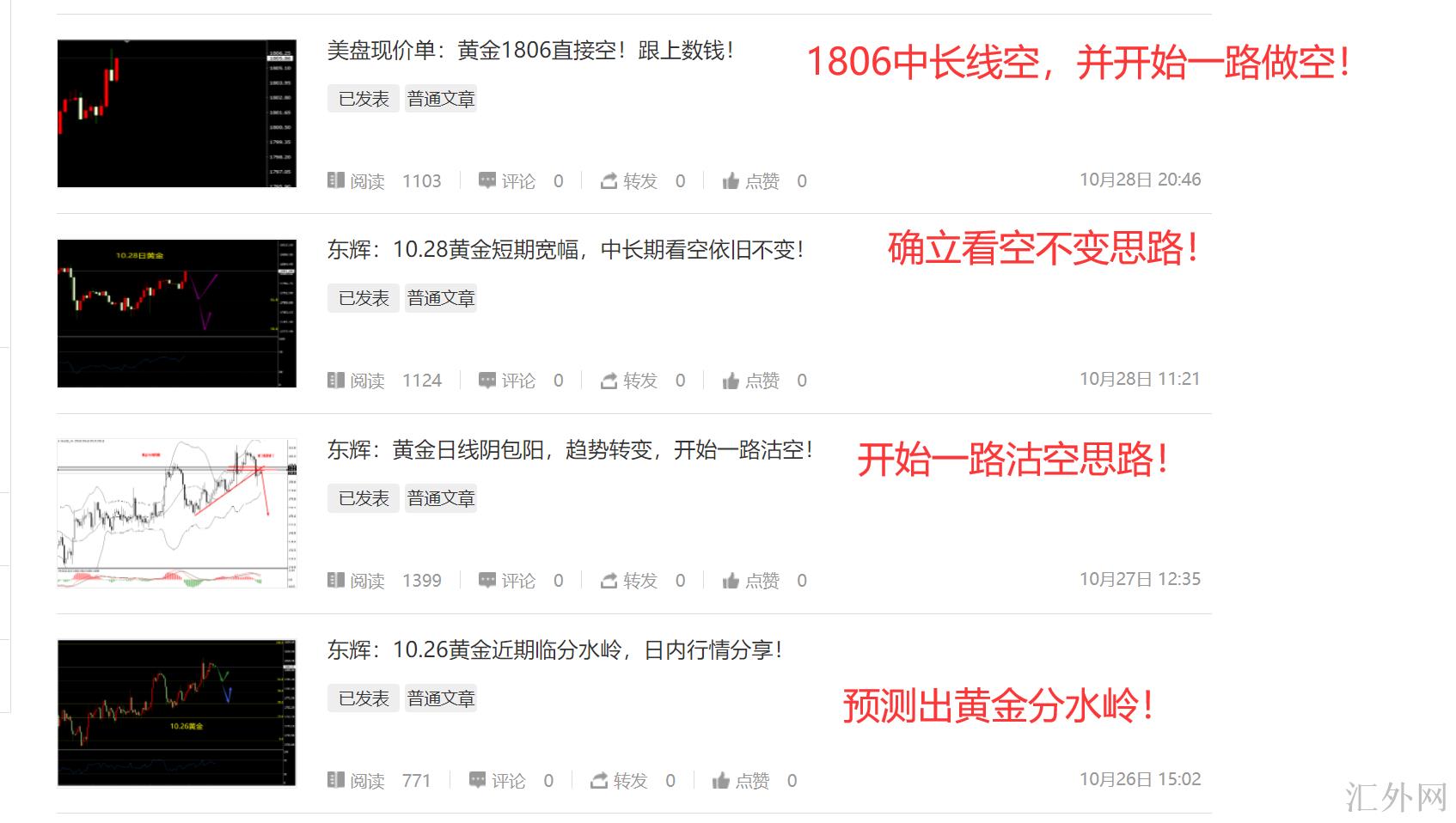 黄金今日10月29号终于面临卖方,10月27号东辉全网公开做单思路,黄金要开始一路沽空,趋势发生转变!今天终于得到验证 确认!昨日更是给出1806 实盘1808 09买跌的抄顶经典操作,相信关注和跟上的粉丝 特别是实盘学员均为大赚!我敢在全网公开说这话,自然是由于我们实盘学员们收益颇丰,极少数学员没有完成f仓!实施力与配合决定你的收益!