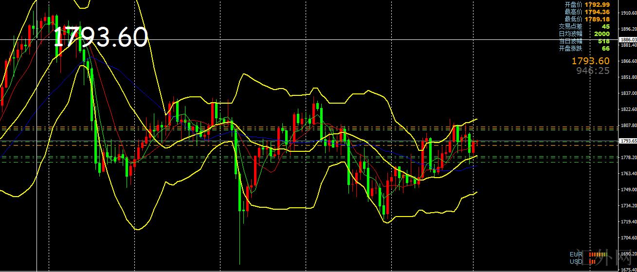 昨日收线小阴,依旧在星期五下挫后之下收线,未能刷新到1798左右!星期一黄金现货表现较好,呈震荡上升,但未能击穿1800关键点位,收盘上涨0.6%,报得1793.47美元每盎司。现货白银早盘盘整,于欧盘开始上升,最终收盘上涨0.7%,报得24.03美元每盎司。美元指数在历经了纠结行情后面于欧盘开始下探,最终收盘下跌0.27%,报得93.88。星期一震荡上升,*位突破但是上涨未能保持,依旧在在下挫后1798之下运行!