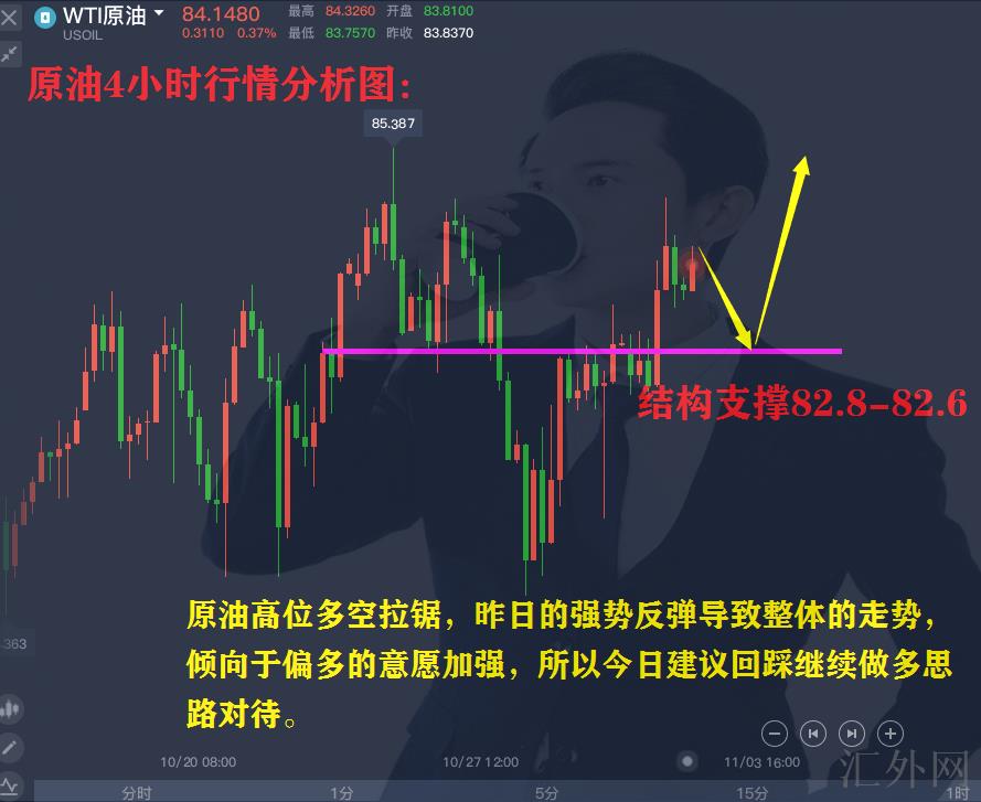 4小时两次回测80.60-80.80间启稳,此位形成短时间平台支撑点,也形成短线买方临界点,操作上短线在此位之向上瞧涨思路不变,朝下击穿则转空。当前保持在临界点之上震荡修正,回踩依托下缘试图看涨。诚然当前小周期有轻微钝化态势,日间短线不消除持续保持在区间85.30-81.0之间宽幅拉锯,短线暂且保持在区间内先看震荡,