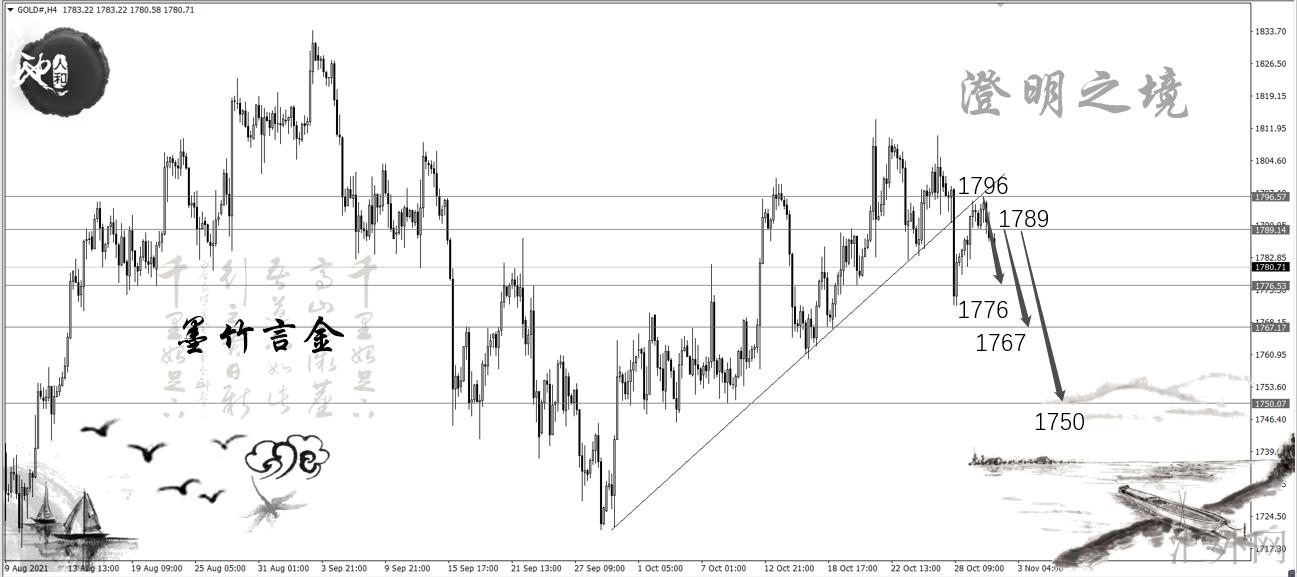 阶段计划持续下探注意1776和1767的支持,更深一步保持注意1750的计划即可,预期行情抵达1745会有回弹.... 一步步来,如有空仓的朋友,日间可关注到1789美元的抑制,不一定能够给到,行情在发文期间已经稍有起步的姿态了。