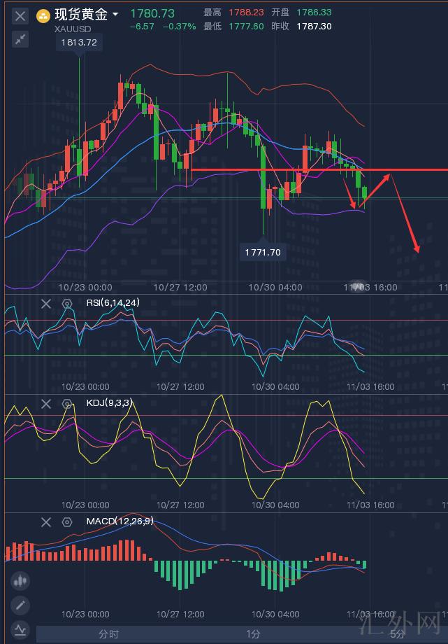 11.3黄金策略:1、激进派1788-1790买跌;2、稳健者1770-1775买涨;
