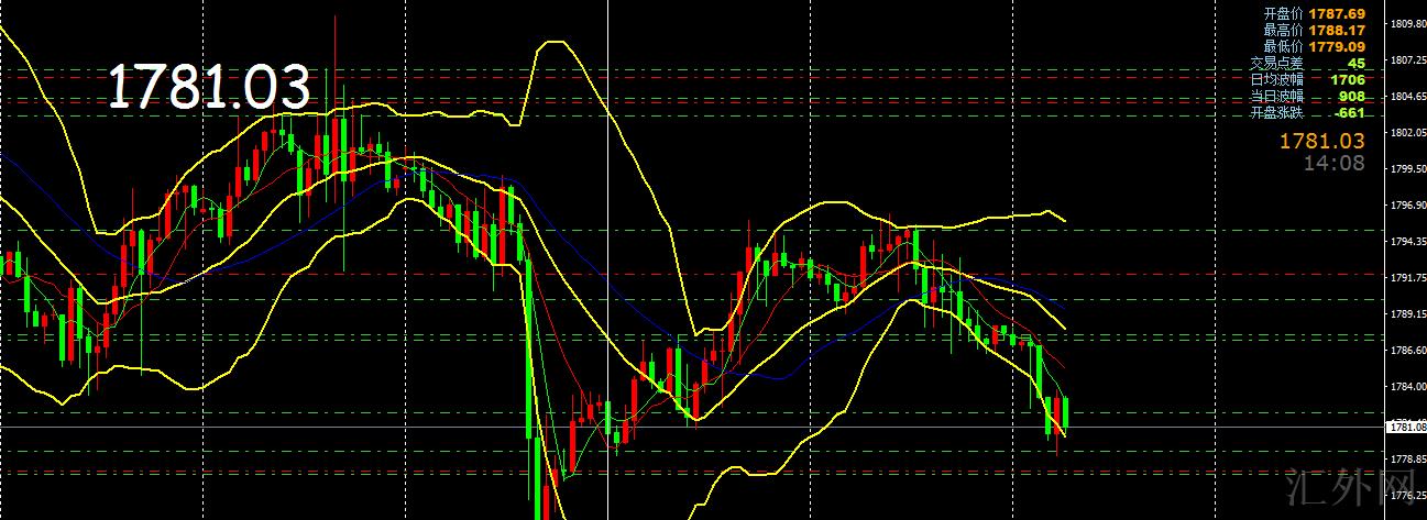 黄金从技术分析来说,从日K线的收盘结构来说,短时间阴阳循环的局势仍未更改,看似突破弱势,但保持性不强,来回拉锯是最近的主格调。加大了短线操作难度,要有逆向思维一阴一阳的调动走法。均线指标依旧凌乱发散。短时间也会持续保持震荡格调不改。4小时朝下击穿在此之前的上涨通道下缘后面,昨日反抽再证实下缘的延长线,也只有在该种拉锯震荡中才可回弹这么高,在弱势行情中。一般昨日早盘就会直接保持下挫,而昨日早盘守稳低位回涨反抽证实延长线,致使短时间依旧是震荡格调,而并不是极弱的单边。这给操作上加大了一定难度。受于区间震荡难定,早盘不好过早判定区间,要等候欧元兑美元盘后面。当前在1796左右有适当压力,今日早盘若能在此位之下遇阻回调,则还会从新回调走跌,保持破上涨通道后的续跌,反之往上击穿1795。此位也是布林道中轨,立稳1795.会从新回到宽幅震荡区间拉锯,反抽往上轨1807证实压力。综上所述,黄金今日交易参考上高空低多,上方着重注意1800-1807一线压力,以下短时间着重注意1775-1770一线支撑。