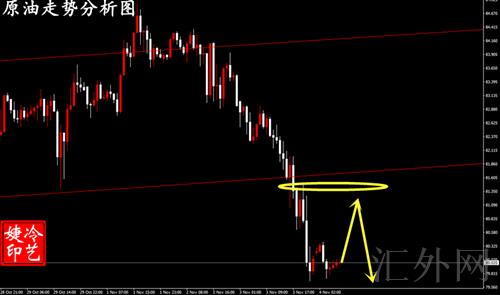 原油日K线表明上涨降低,一旦收低就会进入回踩局势。日K线持续看回调,中阴后面有续跌。4小时形成二次探高不破高,周初上探84.80左右遇阻后,蓄势朝下击穿了80.80-80.60短时间买方防守点,上探不破高,形成4小时级别的二次小顶部,同期破低后,80.60-80.80可当作颈线击穿。4小时先看小双顶回调。操作上略微回弹接差不多80.80先驱看跌即可。