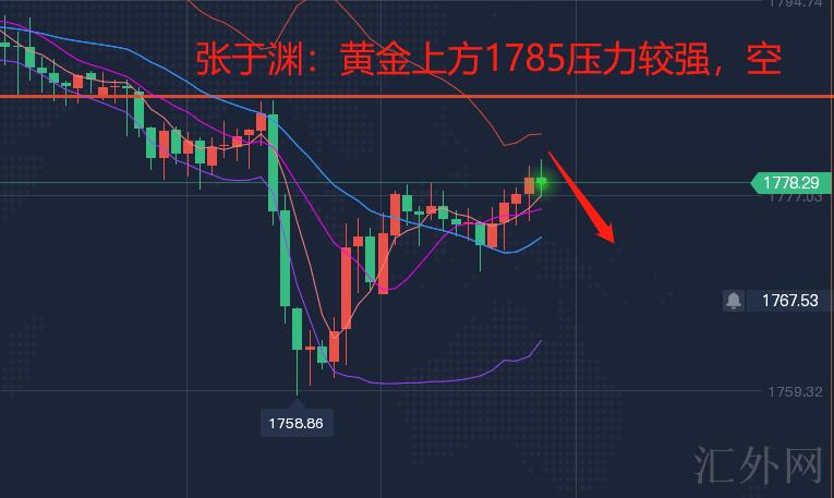 黄金1780空,止损1790,止盈1770-65