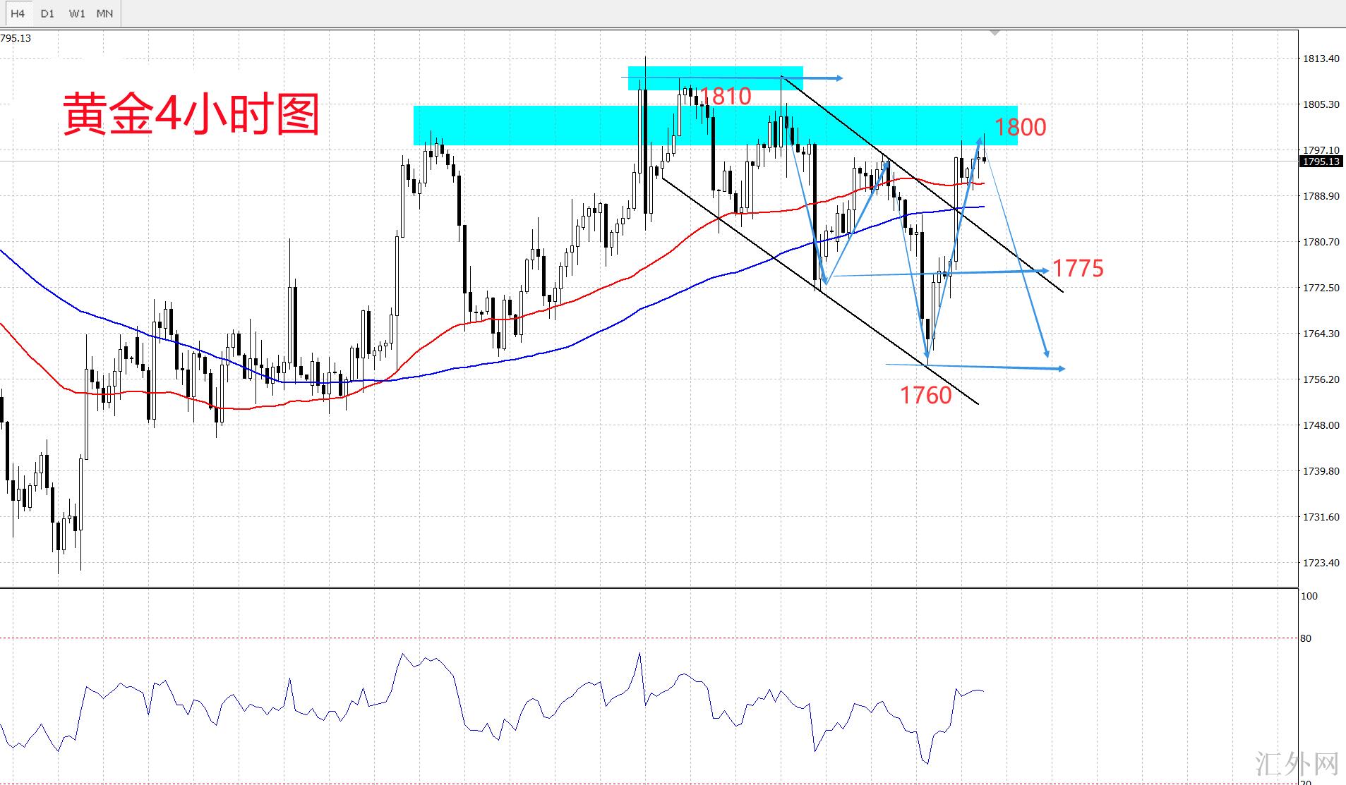 黄金4小时图: