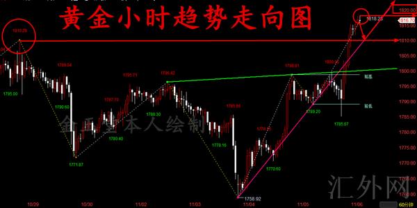 3、假使星期一开盘,黄金直接保持上升,我们则临时先看1820-1825关键点位,然而星期一白天的行情千万不要盲目在击穿1820关键点位后就追多,毕竟连续回弹的行情中必定会有短线修复回踩。等候黄金保持的回弹终结再布局空单最好,而假使黄金直接走回踩,我们也不要指望黄金回踩强度有多大,以下就看1808-1810支撑即可,毕竟日K线大趋势依旧看涨!