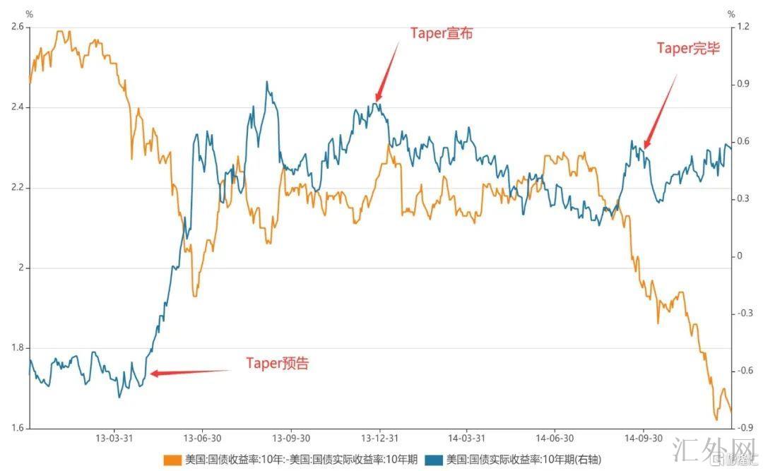 图1:2013年-2014年,美联储Taper前,美债因事实利率上涨