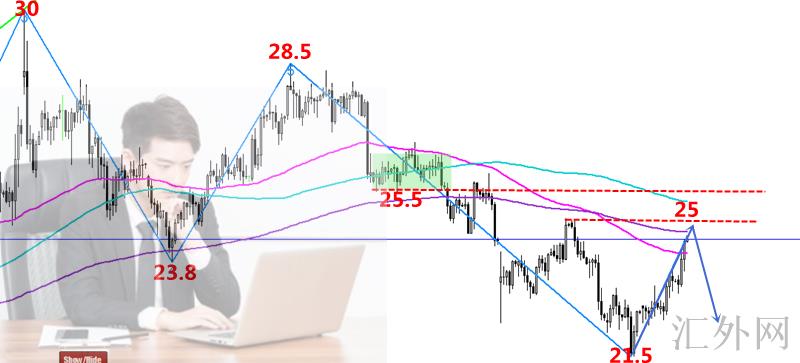 白银前期冲顶30关键点位遇阻面临闪崩下跌趋势,一举创下低点到21左右得以支撑,随后面临了连阳回弹到25左右滞涨,几番打击仍未击穿25关键点位,自此可见25关键点位呈现大批卖方遇阻。最终遇阻下探到23关键点位,然而下跌趋势也没有得到保持,而是又一次回归了24名置,从日K线来说白银刷新23名置面临了连阳回涨,以下呈现启明星看多K线形态,代表以下做多盘支撑也比较强势,所以短时间布林带开始缩口运行,呈现震荡局势。然而从ETF持仓量来说,白银并没有显现增持现象,也是呈现减仓状态,短时间操作可以在23—25区间高沽低渣,若是如破25关键点位那么上涨趋势就比较明朗了。