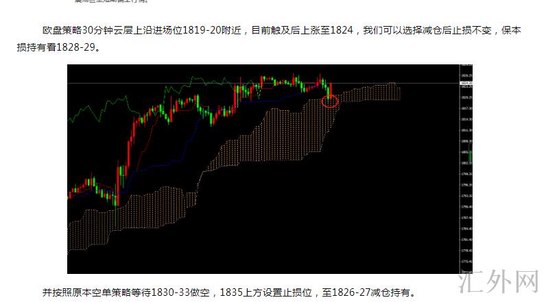 此外今日想加仓空的,参考位置可以15分钟云层的抑制布局。此单子止损放于1830(即15分钟云层上方),目睹1820-21平仓可短线平仓。