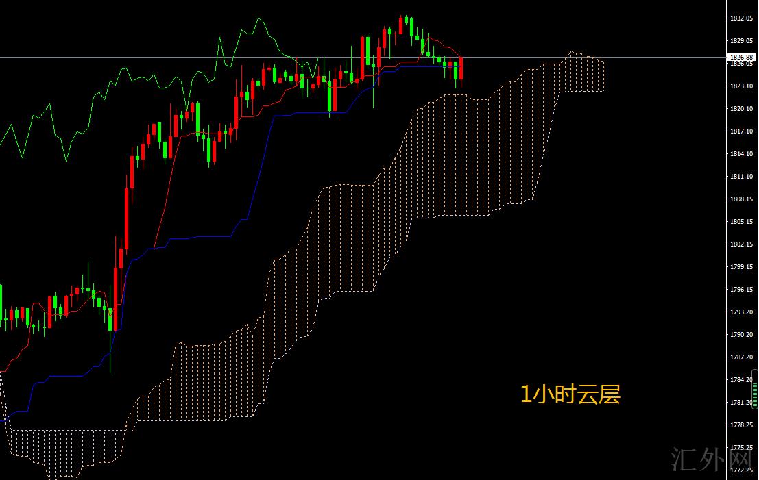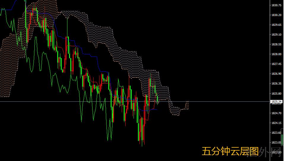 我们用4小时周期的鳄鱼线及布林带可目睹,鳄鱼线绿线及布林带中轨在上星期五我们用云层目睹的重要支撑点1785名置也是共同支撑点,进而我们也能借此注意4小时周期的鳄鱼线及布林带的支持规律。那么当前来说,鳄鱼线绿线在4小时周期与1小时的云层支撑是大差不差相同的,也是今日欧盘时候的支持点,所以此位置其实也是短线空单的平仓参考点。假使再向下,还可注意4小时的布林带中轨及鳄鱼线红线位置,同期也是昨日的最低点。那么短线空单假使不留单过久则可在今天选择于这两个位置平仓。此外也可选择在鳄鱼线绿线及红线中间加上布林中轨区间内以小止损做短线多单,平头寸置关注云层5分钟图。如往上击穿5分钟云层再向下走,那么短线多单平头寸置则注意15分钟图。