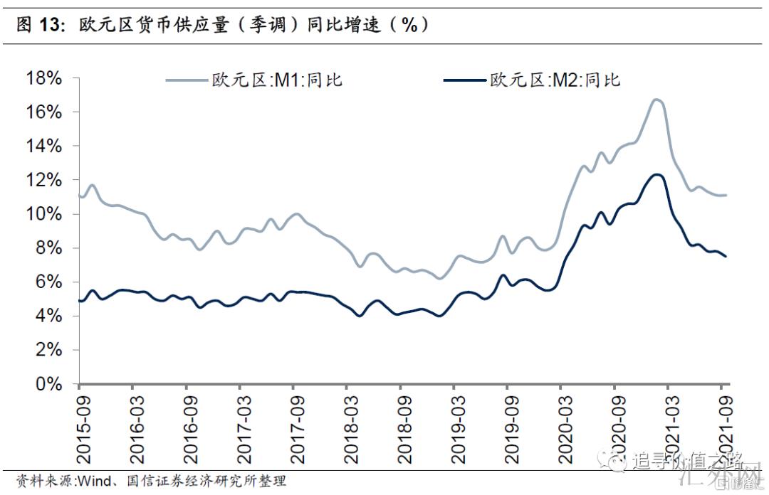 货币提供量同比增速:9月份美日欧货币增速适当回调。具体来说,美国9月广义货币提供量(M2)同比增速12.8%,对比8月份回调0.5%;欧元区9月狭义货币提供量(M1)同比增速11.1%,广义货币提供量(M2)同比增速7.5%,对比8月份分别下滑0.0%和0.3%;日本9月狭义货币提供量(M1)平均余额同比增速7.0%,广义货币提供量(M2)平均余额同比增速4.2%,对比8月份分别下滑0.3%和0.5%。