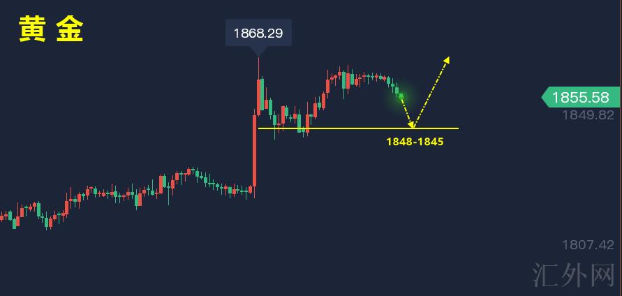 黄金受非农就业报告强劲击穿1800关口到1835左右震荡徘徊,最终这周再受刺激迅速推涨击穿1835这个前期多重顶区间,也是当前核心的核心,买方如虎添翼增速上升到1870关键点位,日间升幅到达50美金附近,上涨趋势尤为惊人!当前日K线六连阳推涨MA5—MA10均线保持金叉上涨,布林带上缘往上开口运行,MACD红柱能开始放量;周线局势也是相当有助于上涨趋势,下探回涨收尾动员短时间均线金叉上升。当前遇阻1960—1915下探趋势线抑制点1868滞涨,且显现一次回踩到1840左右,隔日并没有保持回踩而是又一次打击1865高点,目前已经多次打击1868左右,但是都没有执行突破上升,代表下探趋势线位置阻力比较大,加之最近星期五有希望面临买方获利吐回行情,毕竟这周击穿1835这个多重顶位置一路狂奔,最近有希望下探回踩。导致目前看多情绪高昂,或许回踩强度也比较有限,预计最低也是1840左右,除非又一次遭受大资金接连砸盘,从个人角度来不看空难以易击穿了1835这个多重顶位置,想要跌下去也不是那么容易。当下1865上方呈现大批卖方阻力,今日思路可以回弹开空看回踩,诚然顺势的话依旧低多。亚欧盘先注意1850左右支撑看反回弹强度,若回弹无力那么夜里就有希望保持走跌,日间着重注意1840左右防守。