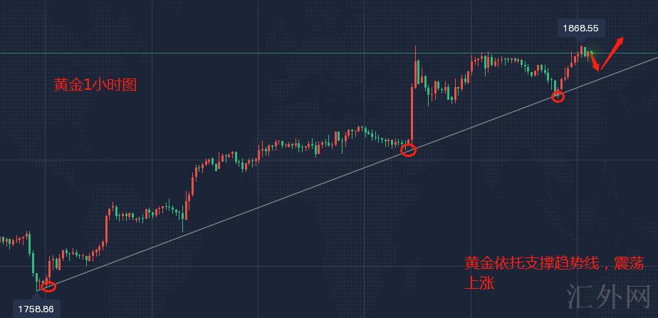 继上周周线收阳,这周黄金震荡上升,又一次收大阳,从K 线来说,是光头阳线,充分表明买方的强劲,结构来说,黄金处在双底的结构,当前黄金处在上升的阶段,从趋势的角度来说,黄金震荡上升,买方并没有更改,我们需求注意黄金的上涨的节奏,只要黄金不跌穿趋势线,黄金买方不会更改,将令持续上升,最终会涨到1906的位置。黄金日K图接连收阳,尤其是本星期五,黄金最后依旧推涨上来了。