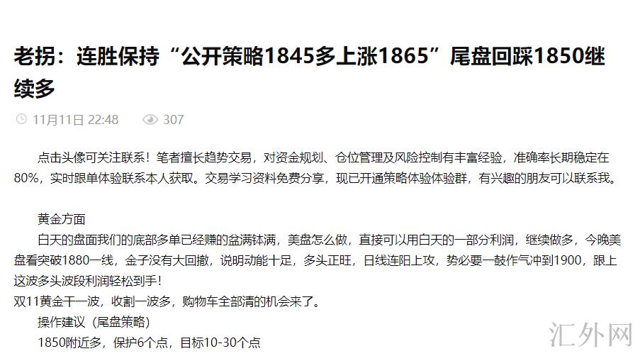 点击头像可关注联系!笔者擅长趋势交易,对资金规划、头寸管理及风险控制有丰富经验,精准率长期平稳在80%,实时跟单体验联系本人获取。交易学习资料免费分享,现已开通策略体验体验群,有兴趣的朋友可以联系我。