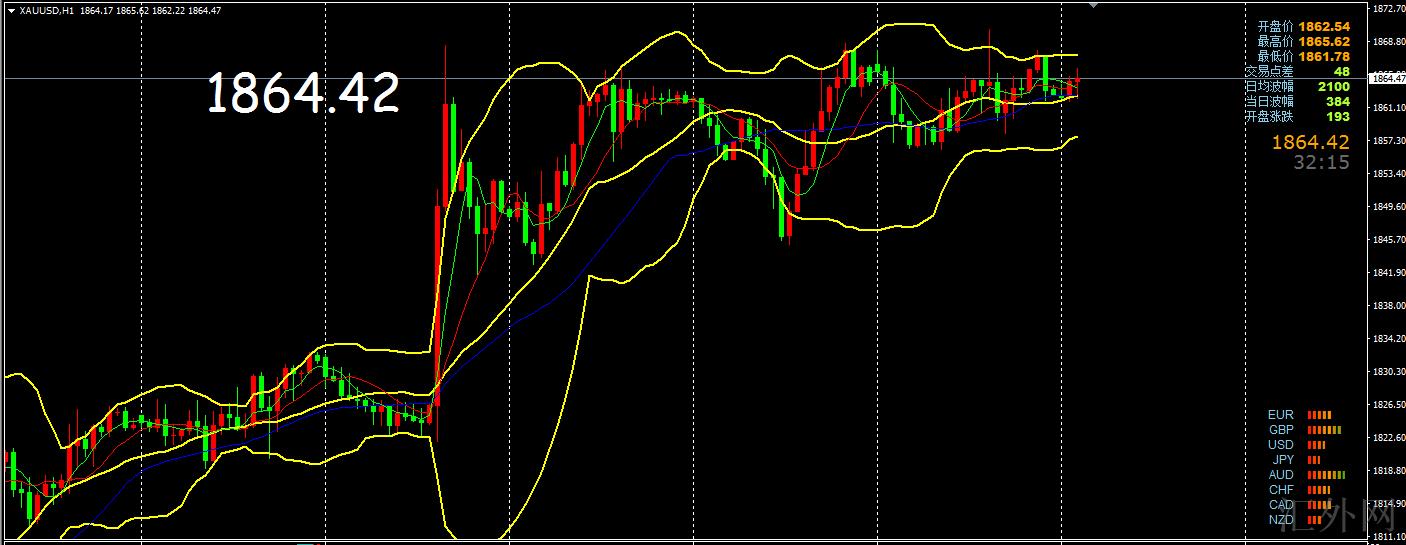 日K线级别,布林带开口往上,价格沿着布林上缘震荡上涨,价格在高位遭遇阻力回调,从击穿震荡区间的形态来说,短线有回调的风险,一般均为突破回踩再推涨,所以短线着重注意1845-1842一线,价格或许去回踩这一线。4小时,布林带开口往上,价格依托中轨推涨,当前处在高点整理态势,日间短线关注以下的支持情形,短线操作临时先看回调,上方注意1875一线压力,以下注意1845一线支撑。