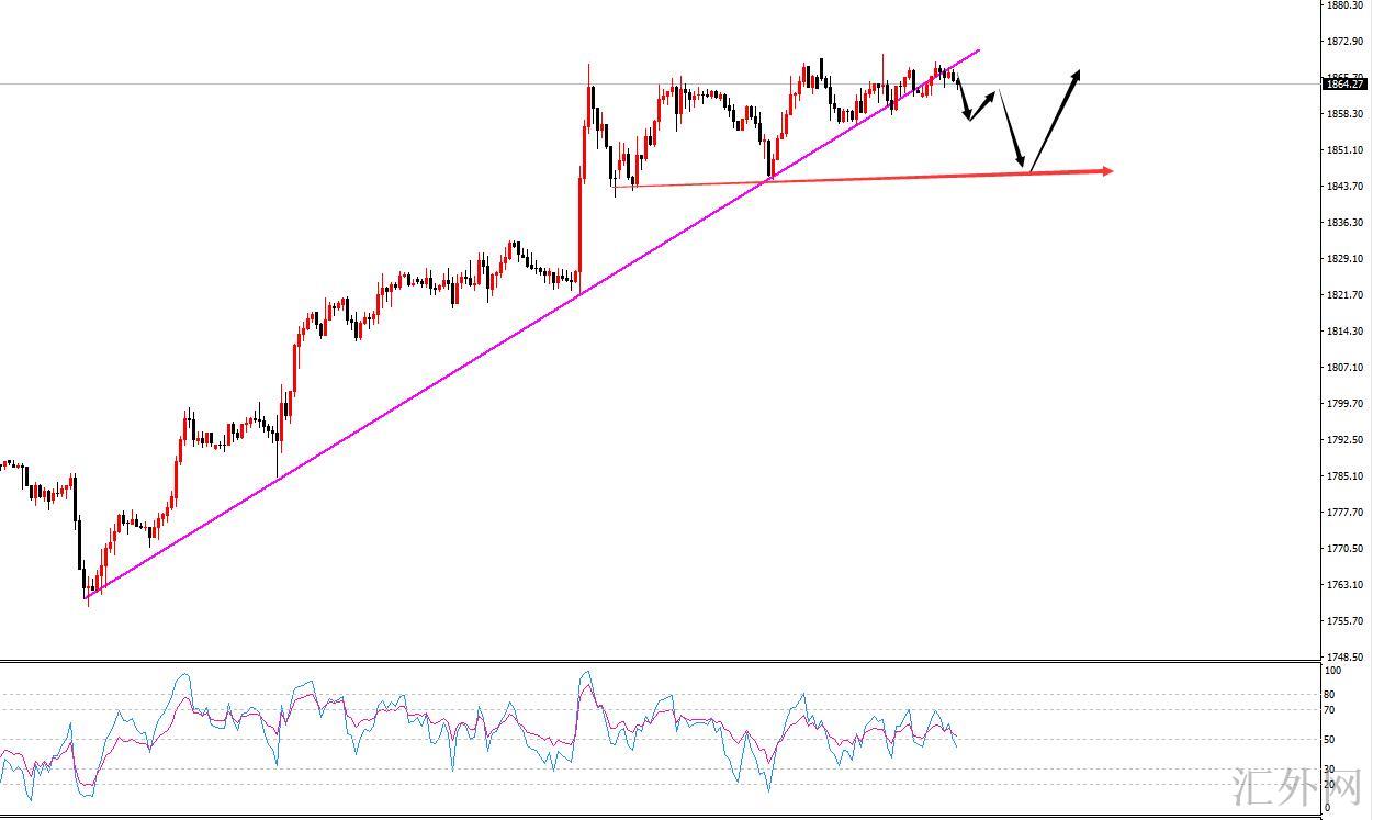 诚然,我们也要防止黄金价格直接上冲的机会,假使显现阳线直接立稳1870的情形,推荐反手直接开多即可!看到1900.