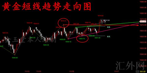 2、今夜黄金假使受于报告有好处空头顺势开始走空,我们也要先看1870关键点位是否再次跌穿,假使跌穿我们则可以顺势追空,以下则在看1860支撑,而买跌的核心就是看1870是否完全跌穿!