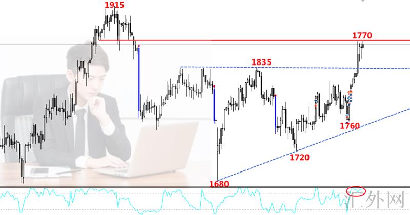 黄金最近行情比较强势,迅速推涨击穿1835这个前期多重顶区间,买方如虎添翼增速上升到1870关键点位,上涨趋势尤为惊人!尽管第一次打击1868高点遇阻面临迅速回撤到1840关键点位,但是下跌趋势并没有更深一步保持,毕竟1835关键点位前期多次打击未破,当下好难以易突破买方看多情绪高昂,想跌下去也不是那么容易,强劲局势已毋庸置疑。果不其然狼若回头、必有缘由!1870关键点位如预计统一不是重压,今日早间文章才显示黄金买方有持续上探的欲望,毕竟几番回撤几番打击,且每次回撤的强度在降低,最终欧盘成功突围1870关键点位,又一次创下高点到1875名置,从当前行情来说美盘有希望保持上升到1880左右,是否冲顶回调就看零售恐怖报告的刺激了。然而从日线图来说已经是七连阳强劲推涨,MA5—MA10日移动均线保持金叉上涨,布林带上缘往上开口运行,MACD红柱能开始放量;周线局势也是相当有助于上涨趋势,这周连阳上升进而打开布林上缘空间,短时间均线也是金叉态势。买方趋势已异常显著,看多情绪爆棚!操作上顺势而为,以回踩入多为主,以下注意1860防守即可,上方注意1880-1890阻力。