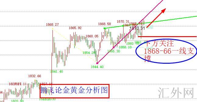 昨日策略给大家分析过,四小时偏调动,日K线依然是看多,而且多次试探1870的抑制,往上击穿的几率比较大,往上击穿后面回调买涨即可,今日已经往上击穿,所以持续买涨即可。以下起涨点支撑在1862名置,同期日K线的5日移动均线支撑,四小时的20日移动均线支撑都在1862左右,所以这里是今日核心支撑点,也是买方分界线位置,以下短线的顶底转换支撑在1866左右。上方没有显著的抑制,唯一一个大的抑制在下挫口1903左右,也就是说这段突破后能看多到1903左右。