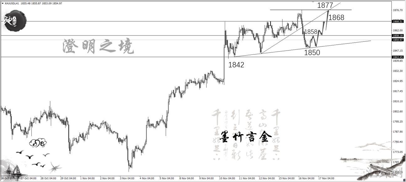 所以在黄金未将保持性买方打击莅临市场以前,我觉得纸黄金和纸白银的中长期布局暂不能实施,短时间交易根据期货/现货市场愈加合适。至于黄金现货日间的交易,亚盘短线回涨欧盘预计将执行回踩,到时便需注意以下1850和1842的支持(前低在1848,二次调动不破前低看多,1842则是水平中枢支撑)。