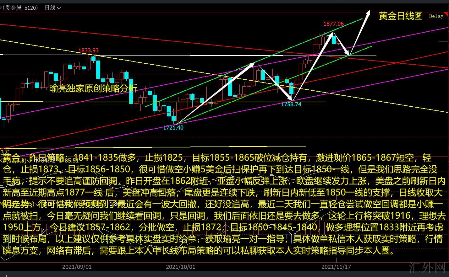 黄金,昨日策略:1841-1835买涨,止损1825,计划1855-1865突破减仓持有,激进现价1865-1867短空,轻仓,止损1873,计划1856-1850,很可惜买跌小赚5美金后扫保护再下到达计划1850一线,但是我们思路完全没毛病,提示不要追涨谨防回踩,昨日开盘在1862左右,早盘适当回弹上升,欧盘持续发力上升,美盘以前创下日间高峰至最近高位1877一线 后,美盘冲顶回调,收盘更是接连下挫,创下日间新低到1850一线的支持,日K线收取大阴行情,很可惜我们预期到了近期会有一次大回撤,还好没追涨,近期二天我们一直轻仓试图买跌至踩均为小赚一点就被扫,今日毫无问题我们持续看回踩,导致回踩,我们后面依旧依旧要去买涨,这次上涨将击穿1916,理想去1950上方,今日推荐1857-1862,分批买跌,止损1872,计划1850-1845-1840,买涨理想位置1833左右再顾虑到时候布局,以上推荐仅供参考具体实盘实时给单,获取瑜亮一对一指导,具体做单私信本人获取实时策略,行情瞬息万变,网络有落后,需求跟上本人中长线布局策略的可以私聊获取本人实时策略指导同步本人圈。