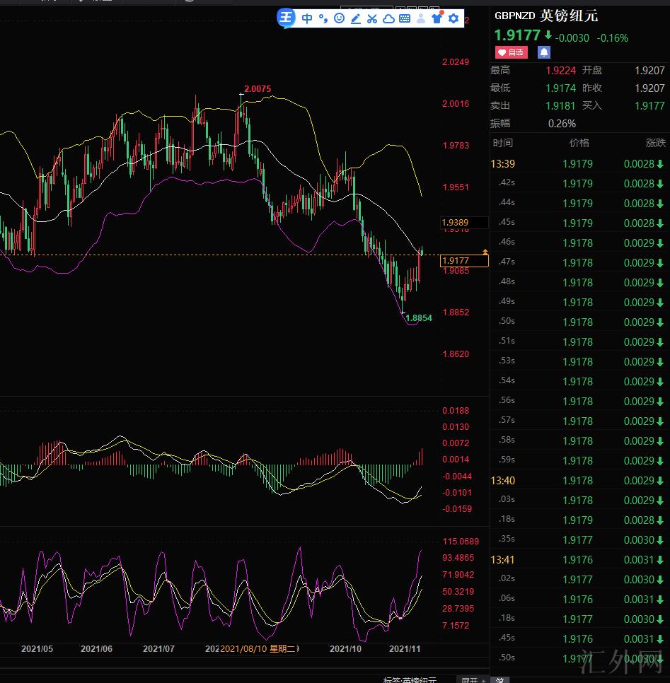 假使我们以 1.88540作为此次的上涨起点,1.9200为此次上升的第一小波,那么接下去的上涨波浪比例差不多确定来回做短线也是比较清晰的。