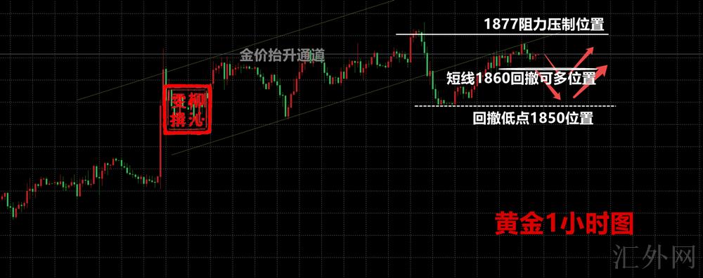今日操作上,不回调不买多,1860区域支撑轻仓多单,计划10~15美金退场;着重注意1850区域支撑购入多单,计划1877击穿(未必是今天);日间先拉高,则以1877为抑制做一次回踩,利润15美金上下看回撤支撑。