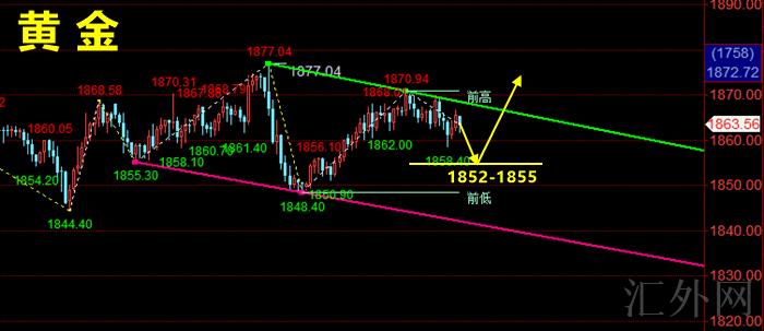 ①日间上方激进可在回弹1865/66、1868-70分批轻仓再短空,隔夜已有此位空单也可持续持有,止损依旧带1873,或待行情立住1870上方手动止损,计划依旧先下看1860左右先改保本止损,或小部分减仓,以下可在1855-53区域再做减仓,且可留有部分持单期望行情跌穿1850,展开波段回修,回撤1840、1835-33的预计。