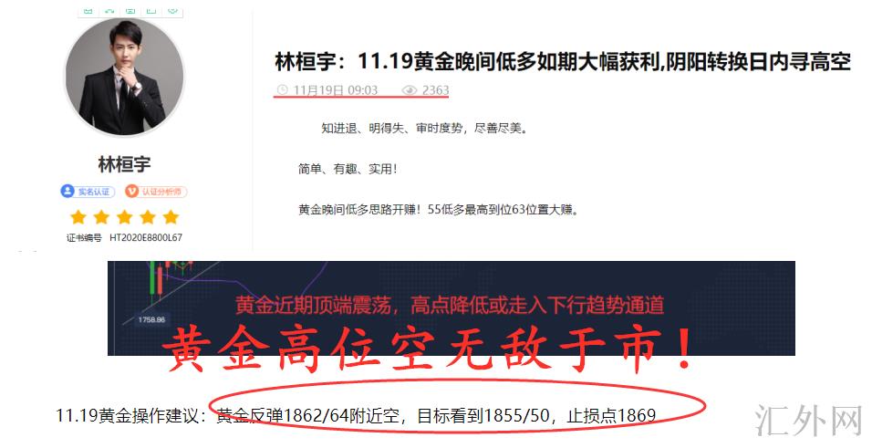 11.19黄金交易参考:黄金任然1866/64左右空,计划目睹1850/48,止损点1871
