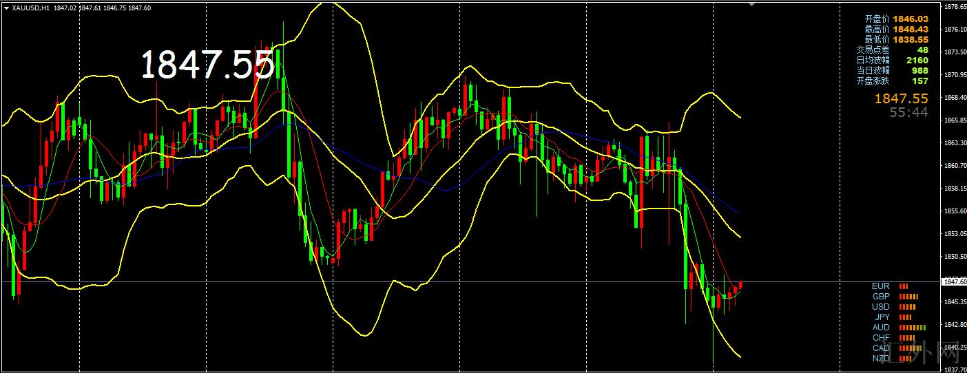星期一(11月22号)早盘开盘后,金融市场显现强烈震荡。黄金现货短线急跌约8美元,最多失守1840美元每盎司,黄金现货短线急跌,最低刷新1838.47美元每盎司。