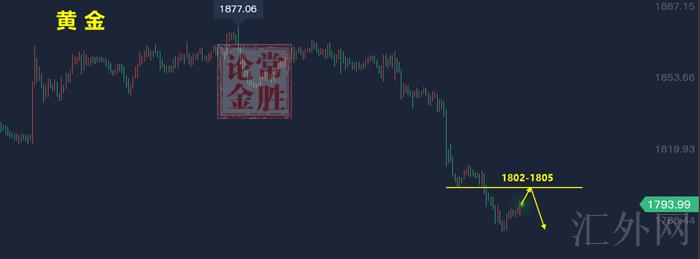黄金今日回弹到1802空,止损1810,计划看1780