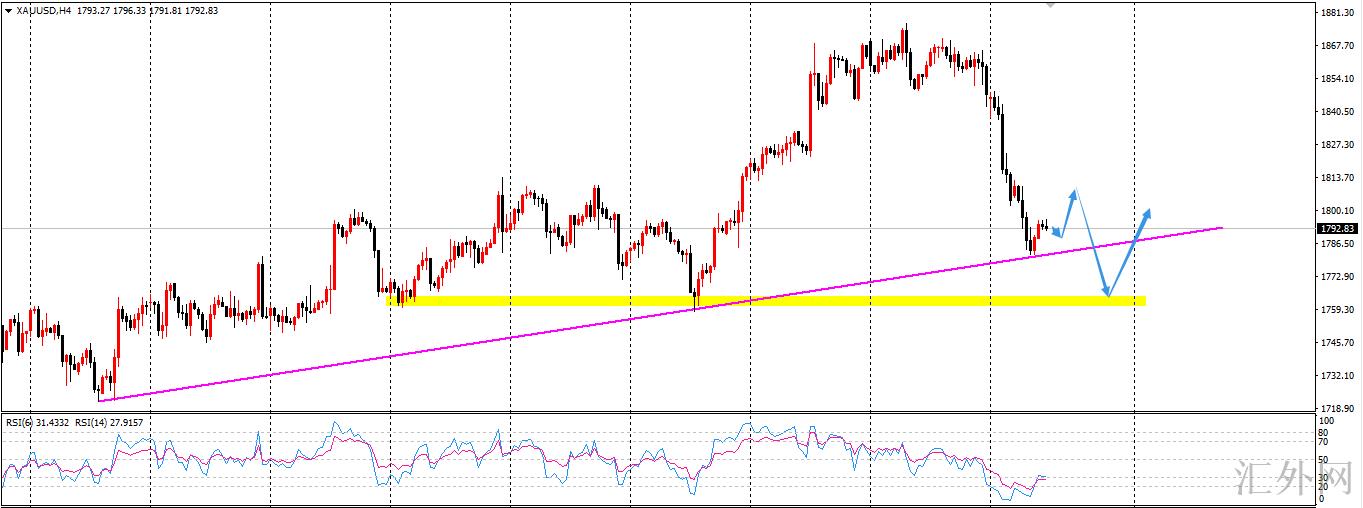 4H结构上今天亚盘以早晨之星开起了早盘的一次上升。然而遗憾的是当前截至发稿只给到了1796,短短15美金的回弹,强度不太尽如人意。早向上瞧回弹的理由也异常简单,昨天直播就讲过,黄金4H到5F周期都已经处在指标的超卖区,伴随下跌趋势的逐渐降低,价格有所修复是必然事情。