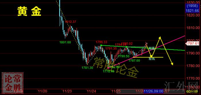 黄金趋势分析:昨日黄金价格在不足10美元的区域呈现上下震荡行情,日k线收一根十字星。这是黄金价格从11月18号痛跌以来,接连第二个交易日收十字星,组成了强烈的止跌反转信号。黄金价格由此开始进入回弹震荡运行阶段。假使从上一个波段高位到近期低位,黄金价格降幅接差不多100美元。那么我们以黄金分割回踩曲线对这个波段执行测算,那么回弹行情起码能够回探到38.2%-50%区间,价格区间在1815-1830区间。尽管目前市场承受美联储加息预计的有好处空头抑制,买方临时显得没有信心。这是极端抛压后的必然表现。需求适当的基本分析消息刺激和主力做多盘参与的引导,市场才可复苏10月和11月上旬的那种热情。而当下市场是存在如此机会的。由于伴随11月份靠近尾声,美国美政府债务临时上限即将到期,到时美国美政府将乱成一锅粥,形成很不错的市场焦点。另外,世界流行病疑似又有回弹的痕迹。而黄金ETF-spdr已经接连四次增持黄金,尤其是最后两次属于大单增持。假使ETF再来一次大单增持,势必从新点燃买方热情。所以12月份初,无论是超跌回弹,依旧买方重启,都意味着黄金价格起码有反攻到1830美元左右的可能。诚然,伴随加息呼声越来越大,美联储12月末的议息会议又形成焦点,市场多空冲突任然会持续增大。所以,预期黄金价格保持在1750-1830大区间震荡运行的几率较高。