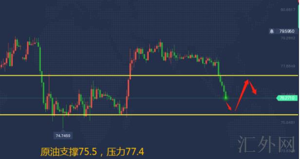 原油上方77.4空,损78.2,看76.5-76